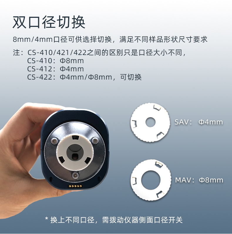 CS-420系列包括3個型號:CS-420為8mm口徑;CS-421為4mm口徑;CS-422為口徑,4mm和8mm和切換。