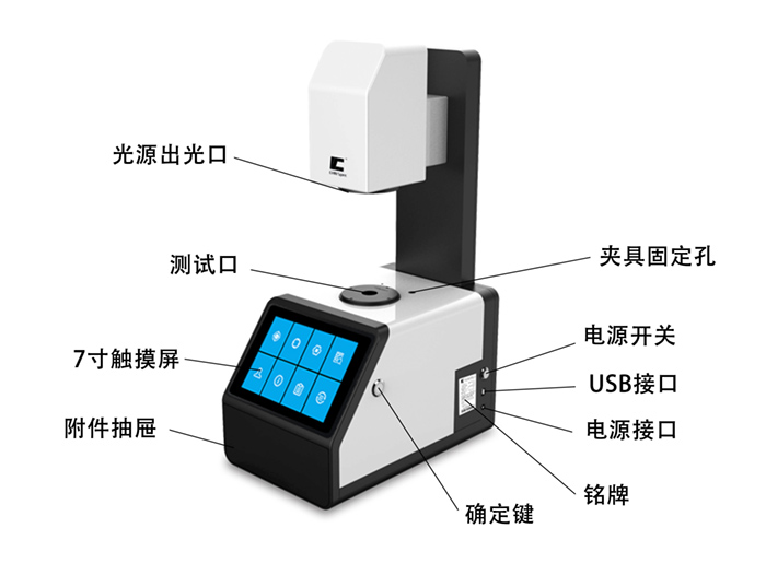 透光率測量。開放測量區域,可豎立、臥式測試。