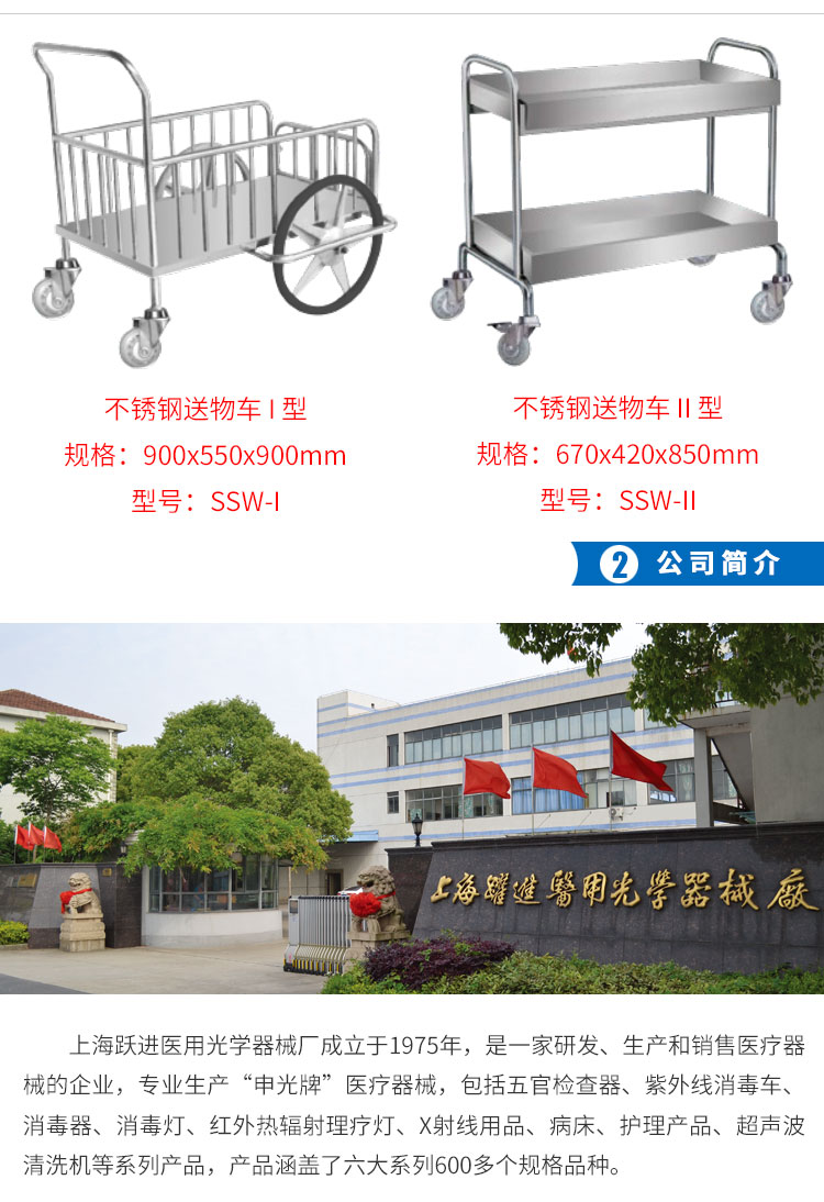 上海躍進醫(yī)用不銹鋼床鋪護理車送物車